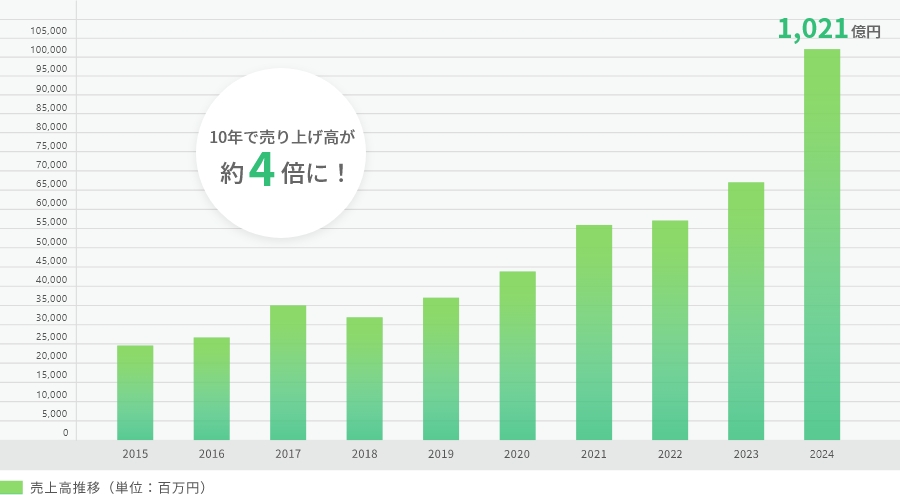 10年で売り上げ高は約4倍に!AIや情報インフラなど、世界的な半導体需要の拡大とともに成長を続けています。