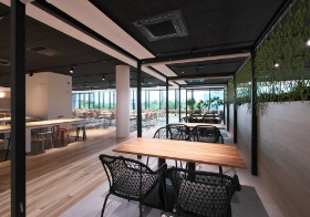 オープンで明るい社員食堂