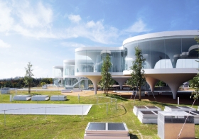 新潟市北区・島見町に位置する「ナミックステクノコア」は、ナミックスの研究開発機能を担うR&Dセンターです。ユニークな外観と最新設備を備えた施設で、電子部品用・半導体モジュール用の導電・絶縁材料が日々開発されています。